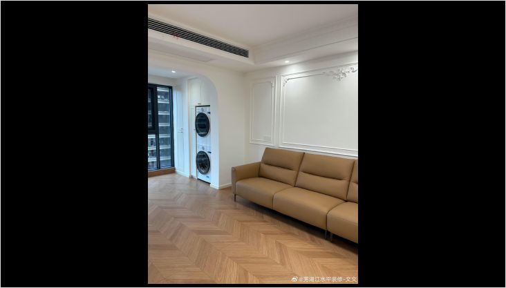 融合现代简约与法式元素,如石膏线、雕花吊灯体现法式浪漫,简洁的家具布局偏向现代