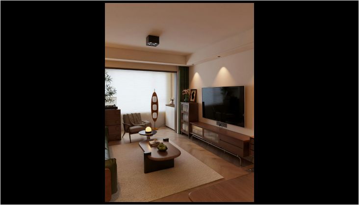 客厅:暖木色与柔和米色相融,搭配简约又有古韵的吊灯、家具,还有竹子等中式元素点缀,清幽雅致,像把宋代的庭院雅致搬到了家里,待在这儿,整个人都沉静下来~
