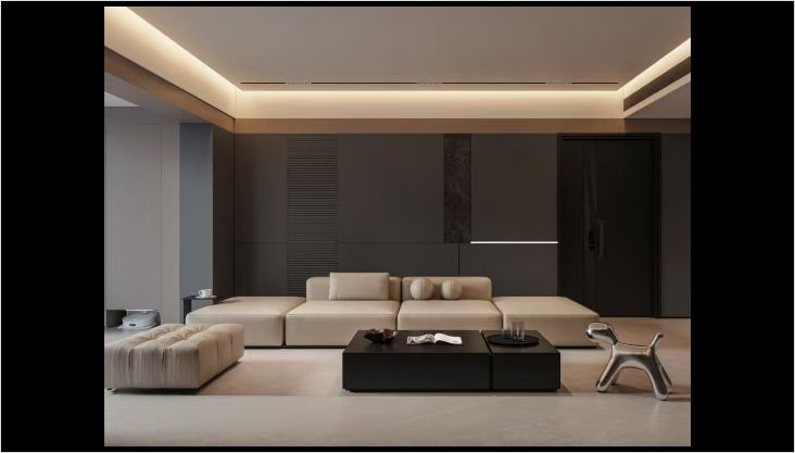 ✅客厅:石膏线+氛围灯带高级感拉满,橄榄绿软装撞色超点睛,动线开阔又治愈,窝在懒人沙发追剧太舒服~