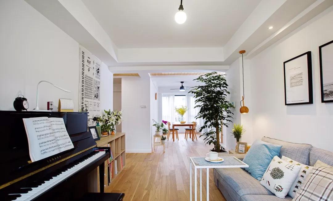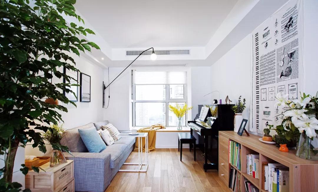 客厅,墙上最醒目的就是那音符装饰布,可以看出业主对音乐的挚爱。